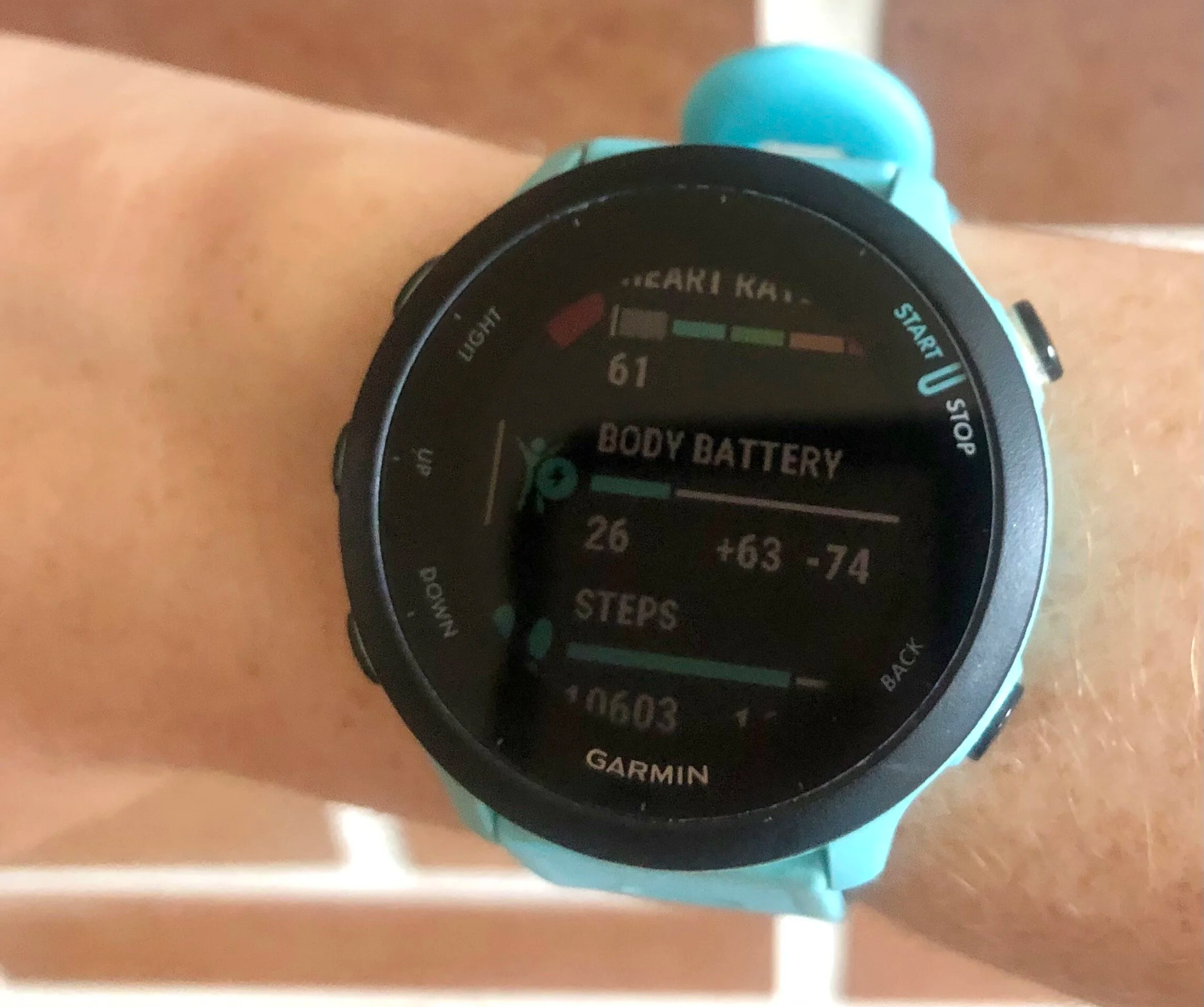 I chose the Garmin Forerunner 55 because it has advanced training and health stats and excellent battery life and is less expensive than many of the advanced Garmin watch models. I am happy with the watch and recommend it as a great mid-level running watch with a lot of health data, including sleep monitoring, heart rate monitoring, step count, lap function for running, and is waterproof enough to run in the rain without issues.