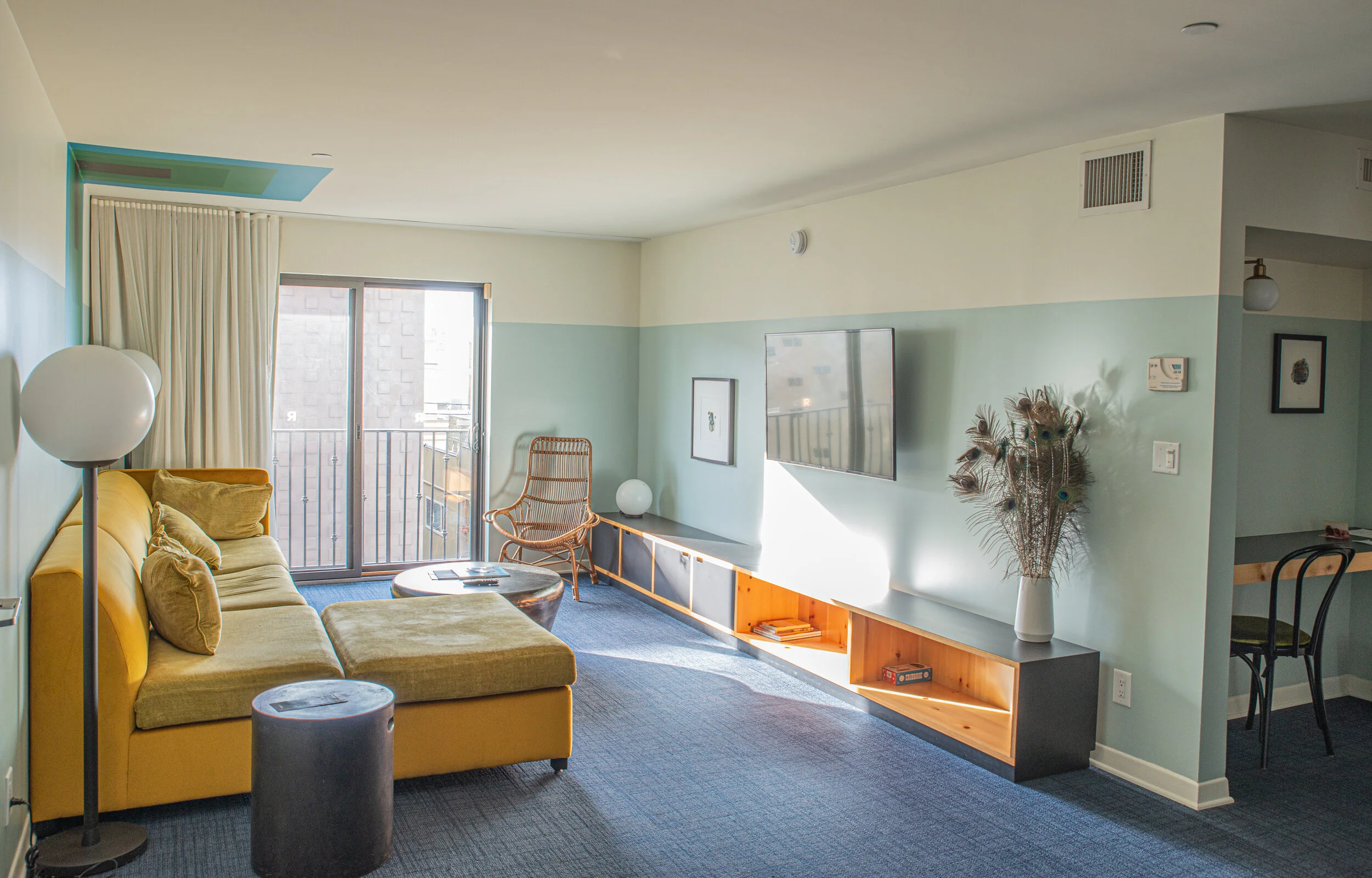 The hotel itself has a beautiful mural of a woman at the front entrance, painted by renowned California street artist Levi Ponce. Art spills over into the rooms at Hotel Erwin as well, with creative hand art in the bedrooms and colorful geometric art in the living area. Yeah I said it - living room! The rooms are so spacious at Hotel Erwin, it is actually more like an apartment (bigger than my NYC apartment haha), with a suite including a spacious living room area, dining room, bathroom and bedroom. The light-drenched rooms are perfect for your beach getaway trip, with beautiful oceanfront views.