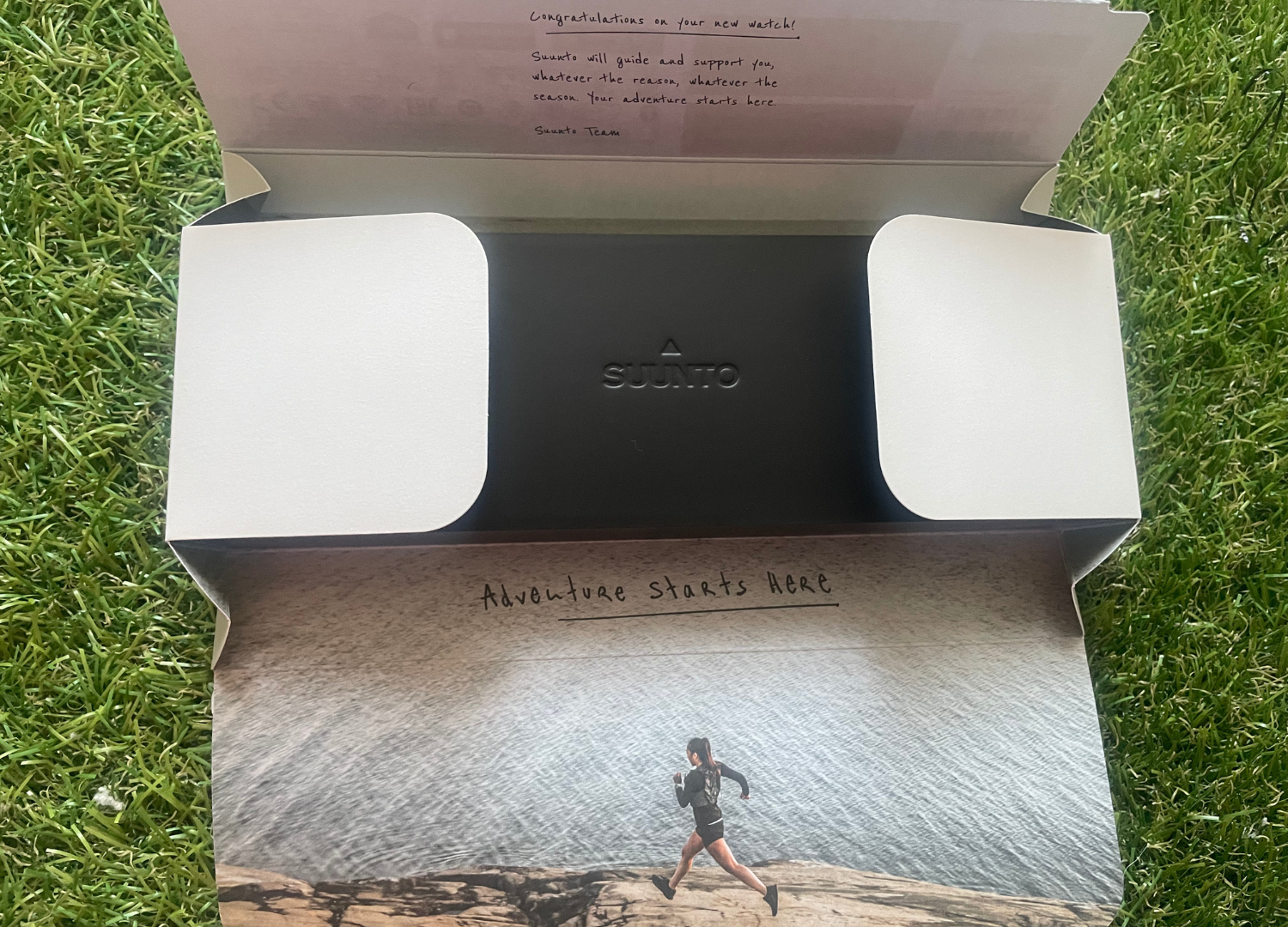As soon as I opened the Suunto running package, I was already in love with the branding. I love the trail running and adventure theme on the box. But of course, the important part is the actual watch, and luckily, that also impressed me. The Suunto Run All Black is modern and sleek looking, with a bright, touch-sensitive watch face and a flexible black band with adjustable velcro closure (for the textile strap, which is the one I got).