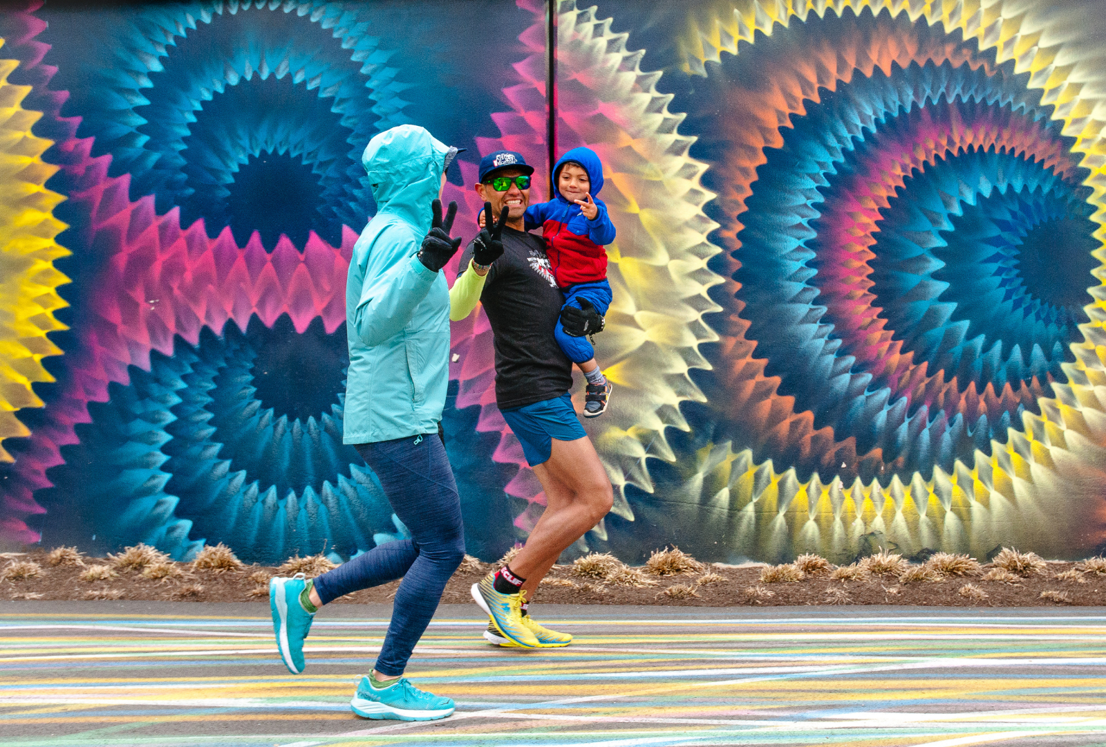 Create your own hype. Make a fun playlist, wear your bib, and celebrate your finish line moment (yes, selfies count!).