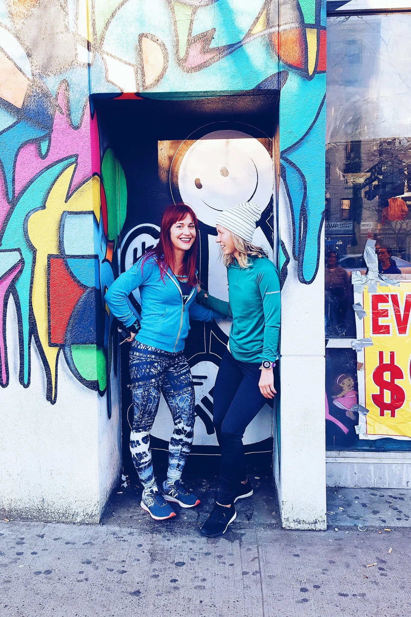 Runstreet founder Marnie Kunz and Girls Run NYC founder Jessie Zapo at the Oology Collective mural in LES.