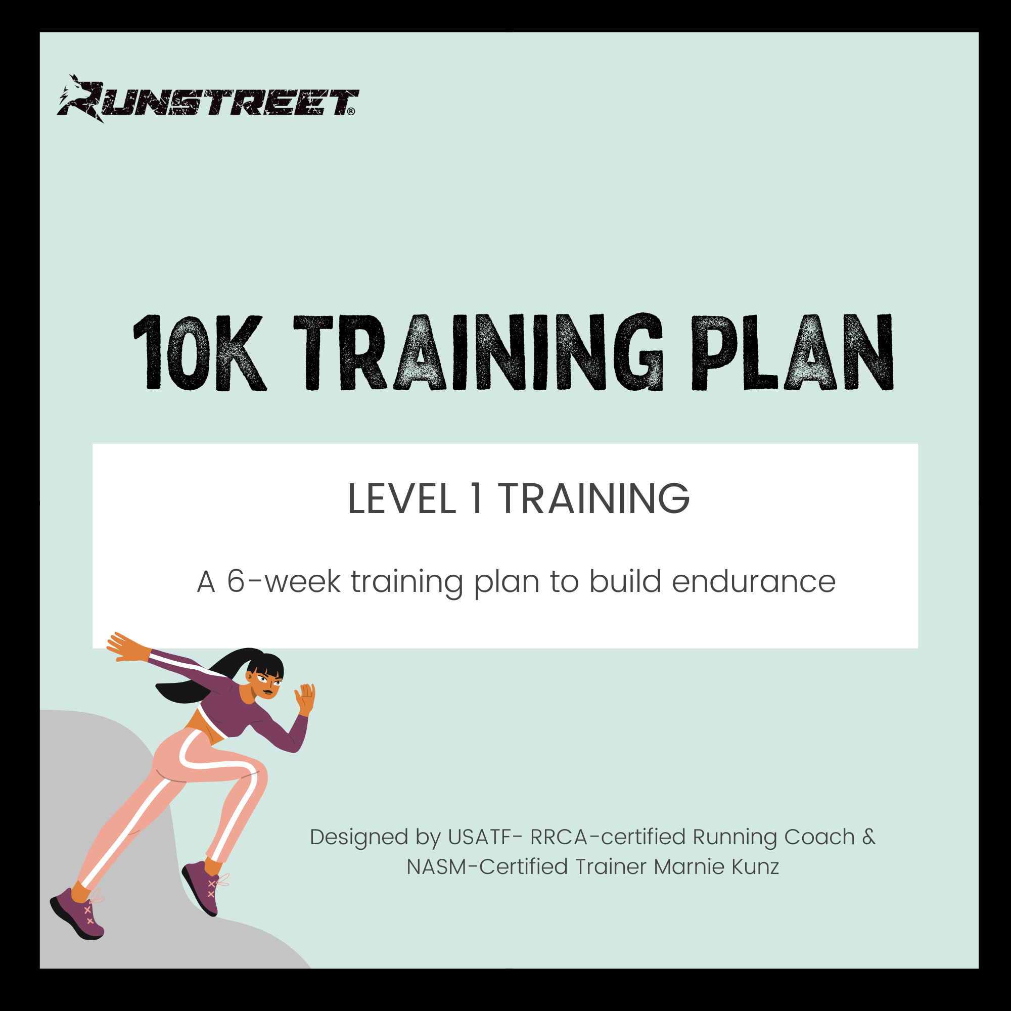 Build your endurance and run a 10K with our 10K Training Plan Level 1: Endurance. This 6-week training program will help you go from running 3 miles to 6.2 miles/10K with 4 workouts a week. Designed for the runner who is able to run 3 miles and train 4 times a week. The program begins with 12 miles a week and builds up to 17 miles a week.